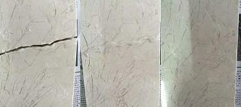 出現(xiàn)破損的石材一般都是大理石,因為大理石的特殊形成原理,容易導致天然缺陷,像暗裂、砂眼、石痣、石膽、而且越高檔的大理石,越容易出現(xiàn)破損、破裂現(xiàn)象;